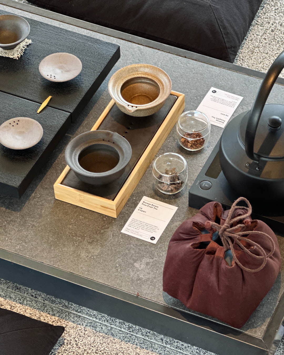 하루의 일정 사이, 고요함을 마주할 수 있는 공간이 필요하다면 리셉션 3층에 준비된 차분한 다도의 자리를 찾아오세요.